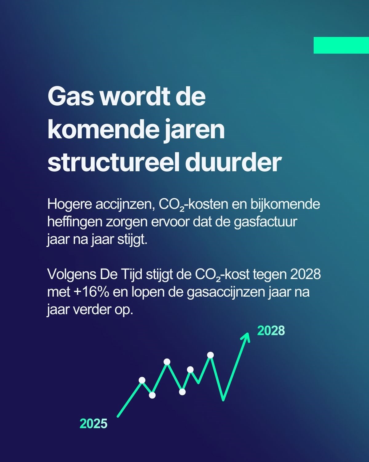 Aardgas wordt de komende jaren structureel duurder. Hogere accijnzen, CO₂-kosten en nieuwe heffingen duwen de gasfactuur jaar na jaar verder omhoog. Voor veel KMO’s wordt het daardoor steeds belangrijker om niet alleen elektriciteit, maar ook gasverbruik nauwkeurig te begrijpen en te optimaliseren.